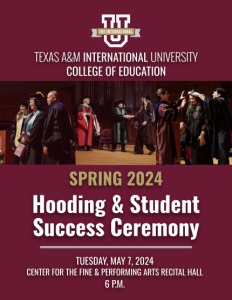 TEXAS A&M I NTERNATI ONAL UNIVERSITY COLLEGE OF EDUCATI ON Hooding & Student Success Ceremony TUESDAY, MAY 7, 2024 CENTER FOR THEFI NE & PERFORMI NG ARTS RECI TAL HALL 6 P.M. SPRING2024